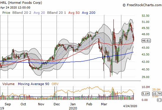 Au lieu de cela, Hormel (HRL) me semble en fait intéressant. Alors que BYND est une attaque à haut indice d’octane, HRL est une défense solide. Le krach boursier n’a ramené HRL qu’à son niveau le plus bas depuis 10 mois. Il a atteint son plus haut niveau il y a une semaine. C’est une action à acheter en période de baisse… et à conserver jusqu’à la fin de la crise. L’action teste actuellement le support 50DMA et risque probablement de retomber à 200DMA.