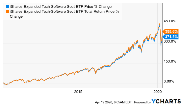 L’ETF iShares Expanded Tech-Software Sector (IGV) possède un portefeuille d’actions de logiciels américains. Le fonds cherche à suivre les résultats d’investissement de l’indice S&P North American Expanded Technology Software. Les actions du portefeuille d’IGV devraient continuer à bénéficier des fondamentaux favorables de l’industrie, car le secteur du logiciel devrait connaître une croissance rapide au cours de la prochaine décennie grâce à l’adoption du modèle Software-as-a-Service et à la demande de services de cloud computing. Un grand nombre de ces actions bénéficieront également du fait que les personnes restent à la maison ou travaillent à domicile en raison de l’épidémie de COVID-19. Bien que ces actions semblent être plus chères que le marché en général, elles ont un bien meilleur profil de croissance. Nous pensons donc qu’il s’agit toujours d’un ETF approprié pour les investisseurs ayant un horizon d’investissement à long terme.