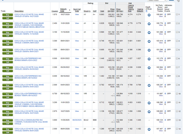 La dette de Coca-Cola à 5 ans s’échange à un taux de 1,25 %, le pire étant celui de la dette.