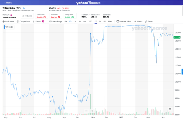 Aujourd’hui, les marchés financiers ont tendance à faire circuler des informations et des rumeurs sur une transaction à la fin du mois d’octobre 2019. Avant ces rumeurs, Tiffany’s se négociait à moins de 90 dollars par action. Et d’ailleurs, Tiffany’s était fortement court-circuitée, de sorte que les fonds spéculatifs qui étaient à découvert se sont réveillés avec une perte massive ce lundi matin.