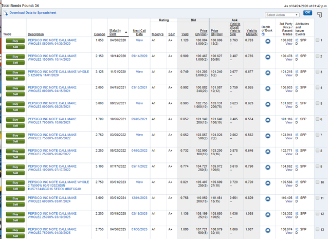 La dette de Pepsi à 5 ans se négocie à environ 1%.