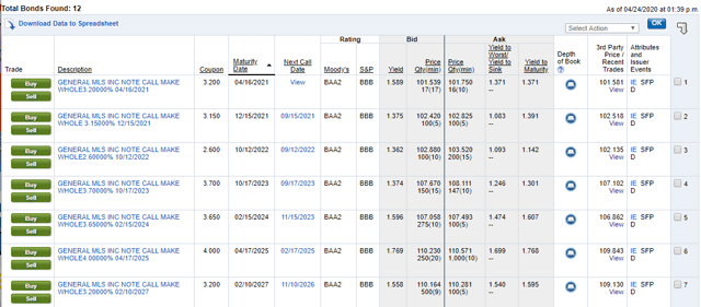 La dette à 5 ans de General Mills se négocie à environ 1,60 %.