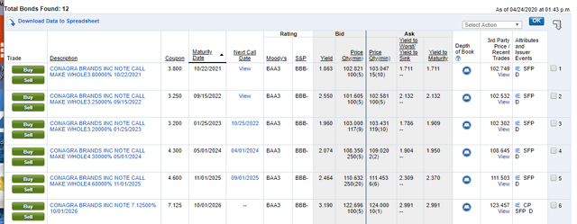 La dette à 5 ans de Conagra Brands, Inc. s’échange à environ 2,5 %.