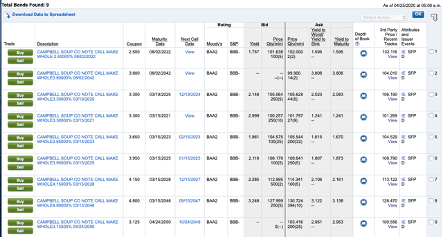 La dette à 5 ans de Campbell Soup se négocie à moins de 2 %.