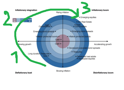 Dans l’article précédent, j’ai parlé de mes prévisions selon lesquelles nous entrons dans une période de croissance négative (courte, espérons-le). Je n’essaie pas d’investir sur la base d’une prévision ou d’une position forte, d’une manière qui repose sur des événements se déroulant selon une certaine trajectoire. Cela dit, la séquence logique des environnements à traverser à partir de là semble être une baisse déflationniste, une stagnation inflationniste (mais seulement si le stimulus est suffisant pour compenser les dommages causés par COVID-19) et ensuite un boom inflationniste.