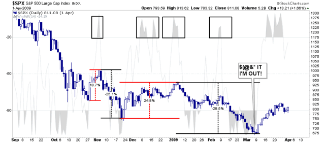 Les actions ont connu une hausse impressionnante de près de 25 % par rapport à leur niveau le plus bas. Oui, le marché haussier était de retour ! Sauf qu’il ne l’était pas. Au cours des mois suivants, la liquidité de la Fed a été absorbée par la « blessure économique béante », et le marché a encore chuté de 28,5% pour atteindre son plus bas niveau.