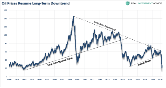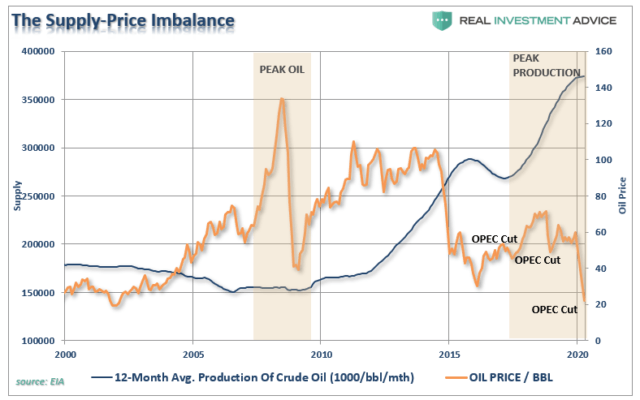 Actuellement, le déséquilibre entre l’offre et la demande s’est à nouveau inversé. Même avant que le « COVID-19 » l’impact du virus, qui a écrasé la demande, l’offre était déjà au plus haut niveau jamais enregistré. Le pétrole avait déjà connu un effondrement prolongé, la croissance de la demande mondiale restant faible.