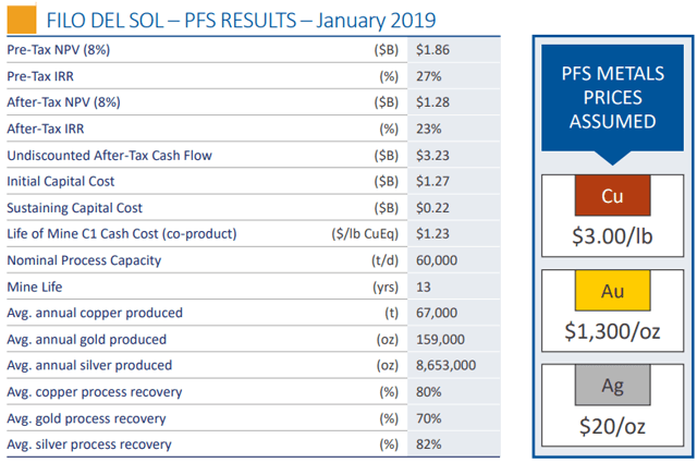 En janvier 2019, Filo Mining a réalisé une étude de préfaisabilité, qui était basée sur le plafond d’oxyde lixiviable du projet. Je pense que la propriété possède une excellente métallurgie et que le ratio de décapage est excellent. Cependant, il faut noter que l’étude suppose un prix très élevé pour le cuivre.