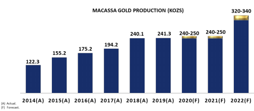 En 2019, le Macassa a produit 241 300 onces d’or à un prix AISC de 695 dollars l’once.
