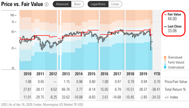 Les parts de MET sont en effet que bon marché. En outre, l’action de MetLife se négocie avec une forte décote par rapport à son estimation de la juste valeur (selon Morningstar).
