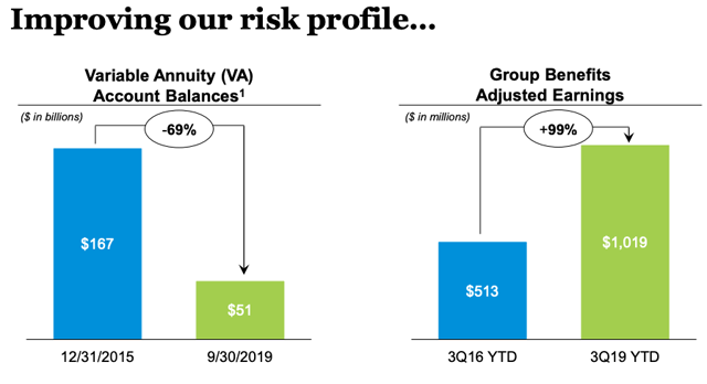 Comme indiqué plus haut, Fidelity s’attend également à ce que le « soutien » apporté par les rachats fasse partie du passé. Toutes ces informations ne constituent pas une grande nouvelle à court terme pour le secteur de l’assurance. Toutefois, comme je l’ai récemment décrit ici, MetLife a plus à offrir que la simple augmentation des taux. En outre, je pense que l’assureur est en mesure de faire face à toute tempête à court terme. Par exemple, la direction a déjà révélé qu’elle s’est attachée à faire descendre MetLife dans le spectre des risques et à positionner la compagnie en vue d’un éventuel ralentissement.