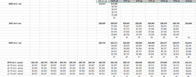 Les lecteurs peuvent rapidement voir la progression des estimations du BPA de Netflix pour 2020, 2021 et 2022 au cours des 7 derniers trimestres.