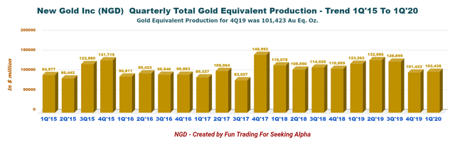 La société a annoncé le 15 avril 2020 les résultats de la production d’équivalent or pour le premier trimestre de 2020. Les chiffres de la production d’or ont été décevants, comme l’indique le tableau ci-dessous, par rapport au premier trimestre 19.