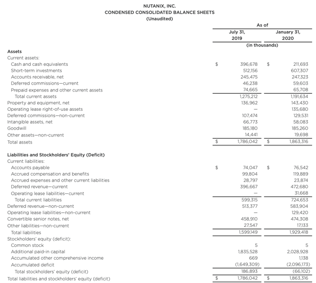Il y a une autre grande inquiétude dans l’esprit des investisseurs tout au long de la crise actuelle : L’épuisement des liquidités de Nutanix. Alors que Nutanix a investi pour se transformer en société de logiciels et mettre en place une équipe de vente plus importante, elle a continué à brûler plus de liquidités comme une société SaaS traditionnelle. Au cours de l’année fiscale 19, Nutanix a brûlé 76,3 millions de dollars en flux de trésorerie disponible, alors qu’elle avait géré un flux de trésorerie positif de 30,2 millions de dollars l’année précédente.