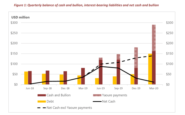 Comme nous pouvons le voir dans le graphique ci-dessous, Perseus a terminé le troisième trimestre fiscal 2020 avec des liquidités satisfaisantes, avec 150 millions de dollars US en espèces et en lingots, et une position nette en espèces et en lingots de 12 millions de dollars US, avec 50% payés à ce jour du budget total prévu de 265 millions de dollars US pour construire la mine. Compte tenu du prix élevé de l’or et de la possibilité d’obtenir au moins 30 millions de dollars US en flux de trésorerie d’exploitation au quatrième trimestre 2020 et au premier trimestre 2021, l’entreprise devrait être en mesure de maintenir une position de trésorerie nette, ou de ne présenter qu’un déficit mineur pour achever la construction du projet. C’est assez impressionnant étant donné qu’il s’agit d’une facture assez importante pour une petite entreprise comme Persée, dont la capitalisation boursière est inférieure à un milliard de dollars US.