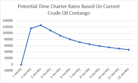 Également abordé dans l’article Contango With Me – Analyse du seuil de rentabilité d’un pétrolier était les conditions actuelles du marché du pétrole brut. En raison de la persistance de taux de production élevés et d’une consommation déprimée, les contrats à terme du pétrole brut sont en contango. Cela signifie que le prix des contrats à terme est supérieur au prix futur prévu au comptant. Cela signifie également que les producteurs ou les négociants peuvent acheter du pétrole brut aujourd’hui, payer pour le stocker pendant un certain temps et se contracter pour le vendre à un prix plus élevé à l’avenir, ce qui garantit un profit d’arbitrage.