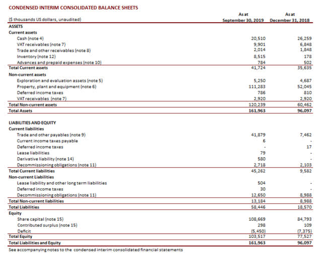 Une autre raison pour laquelle j’ai été attiré par PetroTal est son bilan. Fin septembre (les résultats de l’exercice 2019 doivent encore être déposés), la société disposait d’environ 20,5 millions de dollars US en liquidités et n’avait aucune dette. Cependant, il faut garder à l’esprit qu’il y a encore d’autres passifs qui ne sont pas des dettes financières, donc essentiellement, la capitalisation boursière de PetroTal sera proche de sa valeur d’entreprise.
