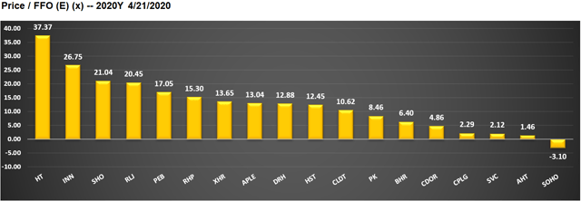 Bien que les estimations des FFO/actions aient été révisées à la baisse pour beaucoup de ces sociétés, Sotherly Hotels (SOHO) est la seule société pour laquelle le consensus des analystes pour les FFO/actions de 2020 est négatif.