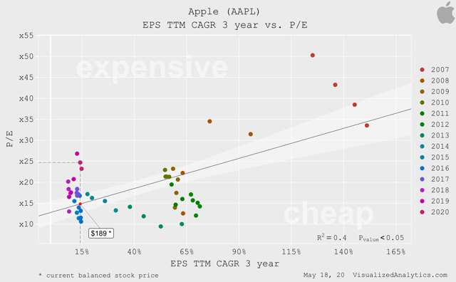 Dans le cas de l’AAPL, il existe plusieurs dépendances fortes qui nous permettent de juger de l’équilibre du prix de l’entreprise.