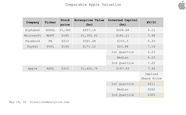 Il est très délicat de comparer Apple à travers des multiples. Mais je vais vous montrer quelques modèles qui ont fait leurs preuves.