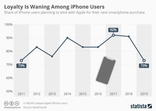 Nous savons également que la fidélité des utilisateurs de l’iPhone a considérablement diminué l’année dernière :