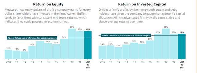 Ameriprise Financial est, en l’occurrence, une entreprise facile à apprécier – et la façon dont elle s’est comportée ne fait que le confirmer. Avant de clore cette section, je vais vous expliquer comment l’entreprise a amélioré le RdE et le RdC au cours des dix dernières années, en suivant les mêmes tendances que ci-dessus.