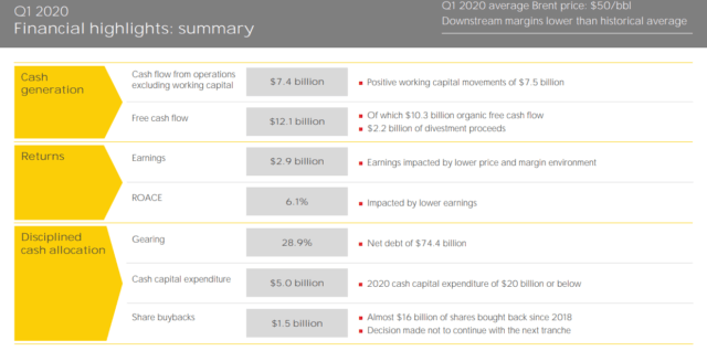 Royal Dutch Shell a également réussi à obtenir des résultats financiers significatifs pour les investisseurs au 1er trimestre 2020.