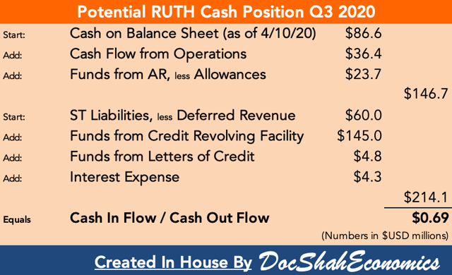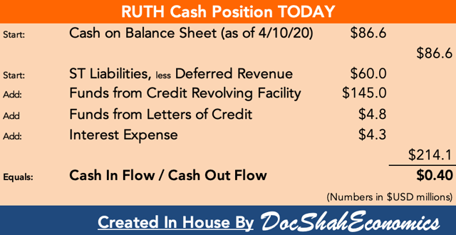 Alors, avant que la panique ne s’installe et que vous ne pensiez que 40 cents par dollar est une voie vers l’insolvabilité, laissez-moi vous ramener à la réalité. L’analyse des liquidités est un instantané dans le temps, tout comme un bilan. C’est une représentation de la situation de trésorerie de l’entreprise telle qu’elle se présente aujourd’hui. À l’avenir, lorsque Ruth’s s’ouvrira et commencera à gagner de l’argent auprès de ses clients, sa situation de trésorerie s’améliorera considérablement.