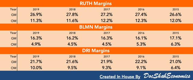 Darden a de solides marges pour cette activité, mais aucune des deux sociétés ne bat celle de Ruth. Par conséquent, non seulement Ruth gagne dans le jeu de l’analyse, mais aussi en termes de marges.