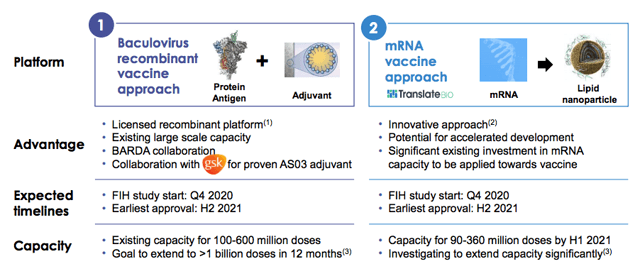 Il existe deux approches vaccinales (baculovirus et ARNm), toutes deux devant commencer au quatrième trimestre 2020, l’approbation la plus précoce étant prévue pour le second semestre 2021. Le calendrier n’est pas aussi ambitieux que celui de plusieurs homologues. Toutefois, Sanofi est l’un des principaux fabricants de vaccins et dispose d’un avantage évident en termes d’échelle et de capacité. Cela dit, il y a déjà au moins 76 projections de vaccins COVID-19 actifs en cours, la concurrence s’intensifie donc.