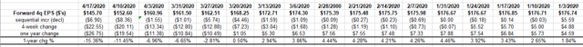 L’estimation sur quatre trimestres de 145,70 dollars, qui mesure la période du T2-20 au T1-21, est maintenant supérieure de 4,70 dollars à l’estimation du BPA pour l’année civile 2020, ce qui me dit que d’ici le T1-20, le BPA du S&P 500 aura retrouvé la voie de la croissance.