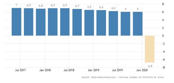 L’économie chinoise s’est contractée de 6,8 % en glissement annuel au premier trimestre 2020, après une croissance de 6 % au cours des trois derniers mois de 2019, alors que le marché prévoyait une baisse de 6,5 %. Il s’agit de la première contraction du PIB depuis le début des enregistrements en 1992, ce qui reflète les graves dommages causés par l’épidémie de COVID-19 après que les autorités aient imposé un arrêt de près de deux mois de toute activité commerciale non essentielle.