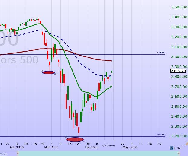 Ma suggestion était de prendre un ton qui rende simple, « Ne vous permettez pas » de vous étirer dans une direction quelconque. Cela a bien fonctionné puisque le S&P est à 27% de ses plus bas et à environ 16% de ses plus hauts. Entre les deux, nous avons connu une baisse de 34% en 21 jours de bourse et nous nous trouvons maintenant dans une reprise de 27+% au cours des 18 derniers jours de bourse. Ce n’est pas vraiment une « navigation en douceur ».