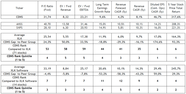 Tout bien considéré, l’évaluation actuelle de Cadence est probablement logique dans cet environnement. Toutefois, une fois qu’une reprise potentielle sera plus claire dans l’industrie du logiciel, je pense qu’il est peu probable que Cadence surpasse ce groupe. Néanmoins, je prévois que Cadence pourra réaliser de très bonnes performances par rapport au secteur technologique au sens large une fois que la valorisation actuelle des primes sera probablement durable à l’avenir, étant donné la stabilité des activités de la société