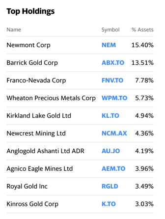 La GDX est un produit très liquide qui dispose de 9,96 milliards de dollars d’actifs nets, négocie en moyenne plus de 69 millions d’actions chaque jour et affiche un ratio de dépenses de 0,53 %.
