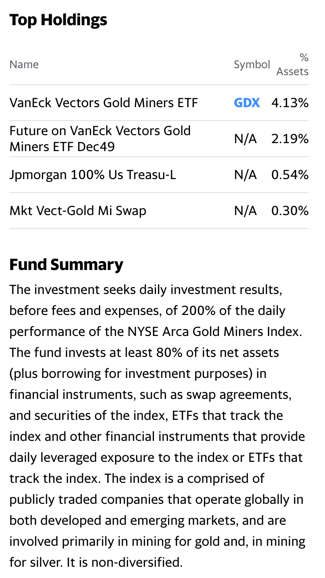 L’indice Direxion Daily Gold Miners Index Bull 2X Shares (NUGT) peut être un excellent outil à court terme, mais dans une perspective à moyen et long terme, la décroissance temporelle ronge les performances. Voici les principaux titres les plus récents et le résumé du fonds pour le NUGT :