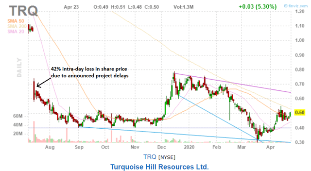 Dans cet article, nous examinerons quelques catalyseurs négatifs clés qui exercent une plus grande pression sur le cours déjà déprimé de l’action. Il semble peu probable que le TRQ se remette de sitôt de son creux pluriannuel. En outre, la forte baisse des prix du cuivre (déclenchée par la récente chute historique du pétrole), associée à l’incertitude qui règne (causée par COVID-19), a aggravé la situation de TRQ. Si un bon investissement « à long terme » dans l’entreprise a un certain sens, on ne peut pas en dire autant des perspectives à court terme de TRQ (par exemple, pour l’année à venir). Allons dans les détails.