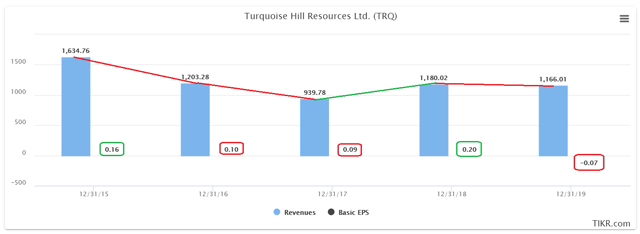Dans mon dernier article sur Turquoise Hill Resources (TRQ), j’ai averti les lecteurs de ne pas se laisser tromper par les bas prix de l’action. En plus de la faiblesse des fondamentaux, minés par de multiples facteurs de risque internes et externes (qui sapent un projet de ressources par ailleurs important), j’ai indiqué que la dépression des prix du cuivre sera la clé de la volatilité du cours des actions et que l’exercice 2020 sera probablement une autre année décevante. Le cours de l’action a chuté de plus de 25 % depuis lors, et je pense qu’il est grand temps de se demander comment le CT se comporte aux prix actuels.