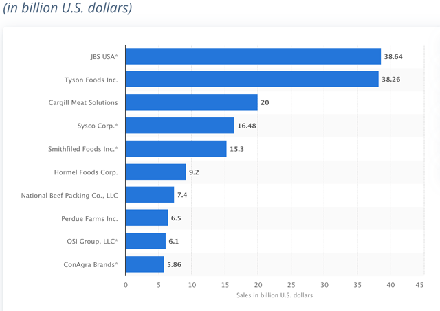 Tyson est le premier transformateur de viande et de volaille coté en bourse aux États-Unis (2018) et se classe au quatrième rang mondial des marques de produits alimentaires de grande valeur. Les ventes de volaille devraient dépasser les ventes de porc et de viande rouge d’ici 2027.