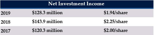 – La valeur de l’actif net par action au 31 mars 2020 était d’environ 15,57 dollars par action, contre 16,77 dollars au 31 décembre 2019 (ce qui inclut l’impact du dividende supplémentaire de 0,06 dollar par action au quatrième trimestre 2019 qui a été versé au premier trimestre), soit une baisse de 7,1 % sur la période.