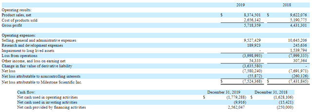 Milestone Scientific ne disposait que de 1,5 million de dollars en espèces à la fin du mois de décembre de l’année dernière, et comme l’activité dentaire était presque à l’arrêt, il a fallu trouver un nouveau financement. Et ce financement s’est clôturé le 14 avril sous la forme de 4,75M +712,5K actions et bons de souscription (ces derniers pouvant acheter chacun 0,5 action, immédiatement exerçable à 1,20$) à 0,95$, ce qui était supérieur au prix du marché au moment où l’offre a été faite.