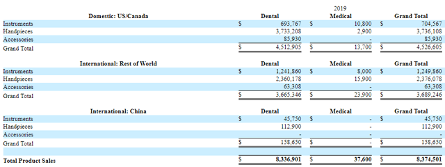 Voici un bon aperçu de ses activités (essentiellement dentaires). A partir du 10-K :