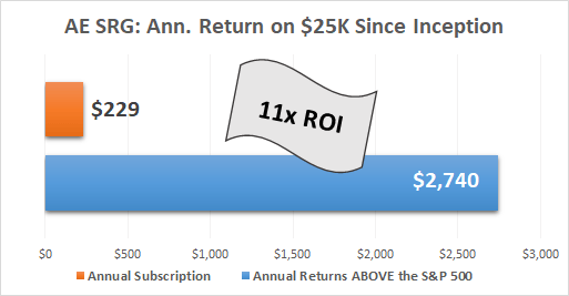J’utilise une approche qui favorise la prévisibilité des résultats financiers et une large diversification lors du choix des actions pour mon portefeuille All-Equities Storm-Resistant Growth. Jusqu’à présent, le petit investissement de 229 $ par an pour devenir membre de la communauté SRG a porté ses fruits, comme le montre le graphique ci-dessous. Je vous invite à cliquer ici et à profiter dès aujourd’hui de l’essai gratuit de 14 jours.