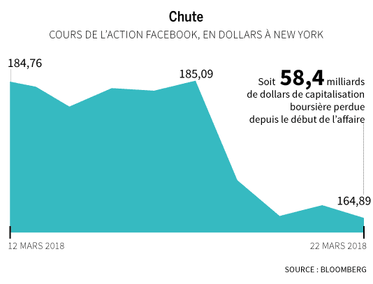 Si les investisseurs sanctionnent l’action, c’est aussi parce que l’affaire entourant les agissements du sous-traitant de la campagne de Donald Trump – Cambridge Analytica – représente une polémique de plus pour Facebook.