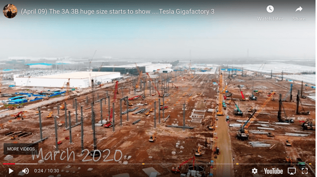 On pense que l’un des deux nouveaux bâtiments qui vont bientôt voir le jour à Shanghai est une installation de batteries. Les détails devraient être annoncés très prochainement. C’est peut-être là que Tesla se concentrera sur la fabrication de ses propres cellules. L’échelle énorme de la construction en cours par rapport au premier bâtiment blanc existant est illustrée dans la photo de Jason Yang ci-dessous :